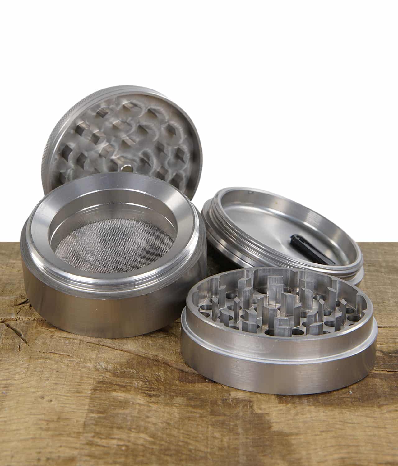 Alu-Mühle Ø63 mm 5-tlg. auswechselbares Sieb Farbe: Grau